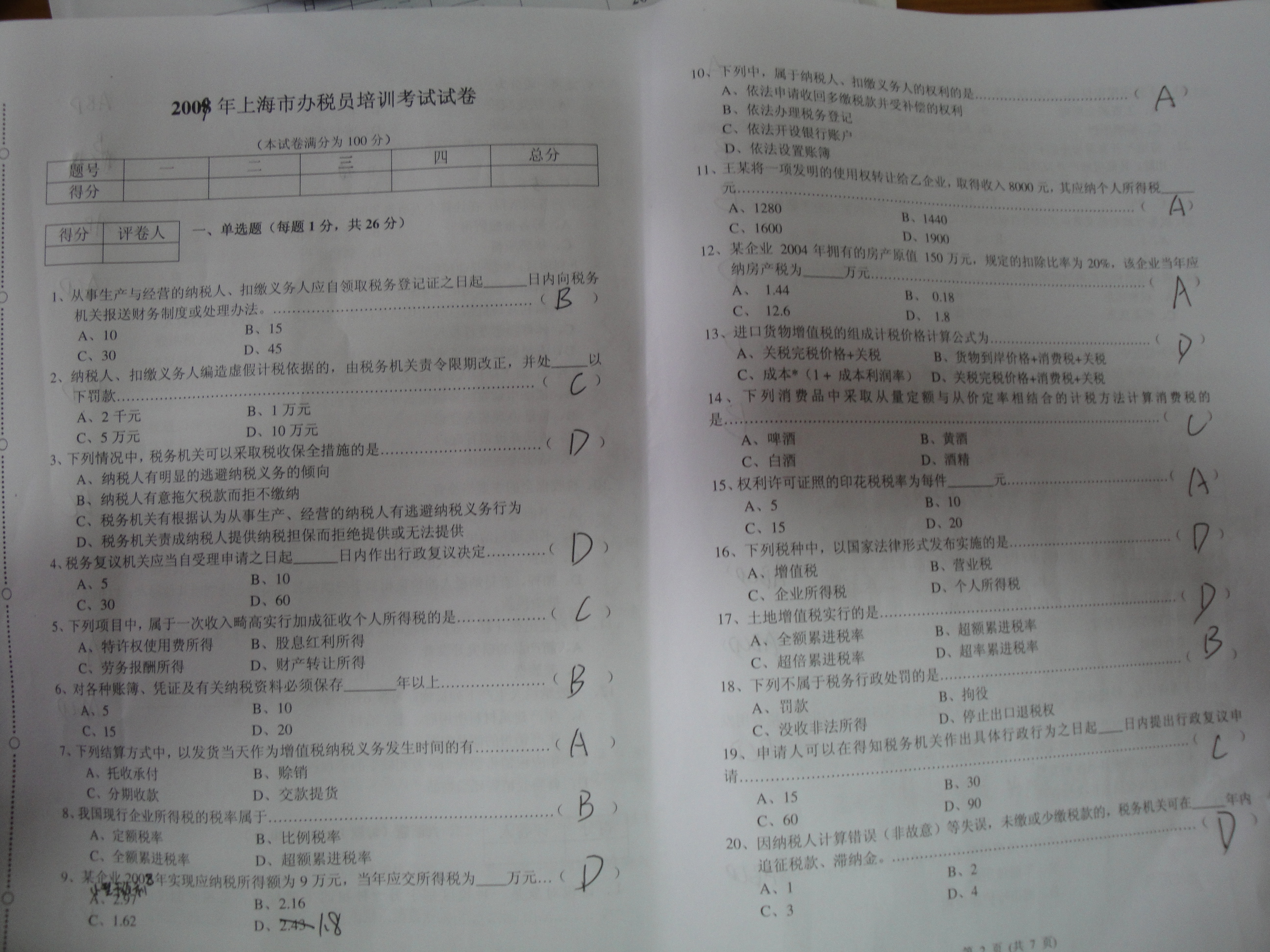 最后来个总结:这种完全是摆设的考试,如果仅仅是为了拿到办税员联系卡而去的,第一天去报个名就走人,第2天直接去考试,完全可以通过的.不过我认真一点想了下,学这些东西并不是什么坏事,以后很多都是要用到的,比如税率,发票,税务相关的东西,一不小心就可能会被人请去喝咖啡.所以我决定有时间的话还是要把那本培训教材好好看看..
